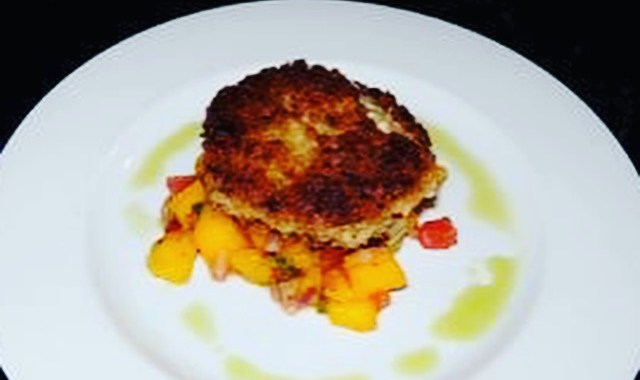 Serve with a spicy aioli or chutney or in this case over mango salsa.
