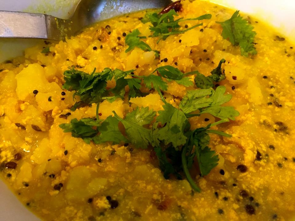 All the spices used in this dish are those that are added to Indian pickles – hence my name of Achaari Aloo – Aloo is potato.