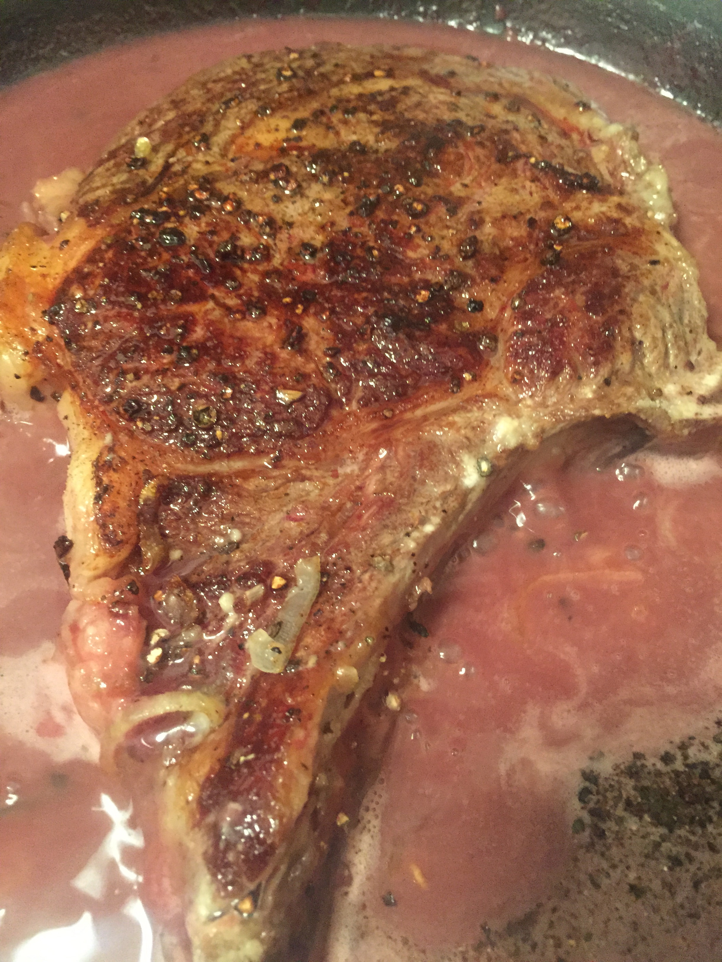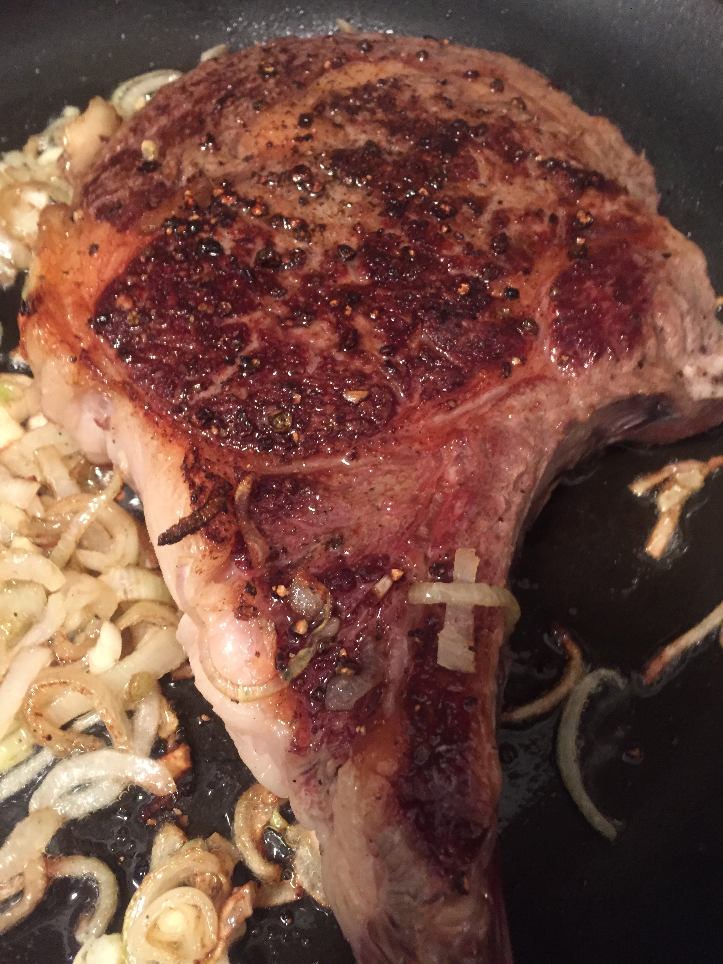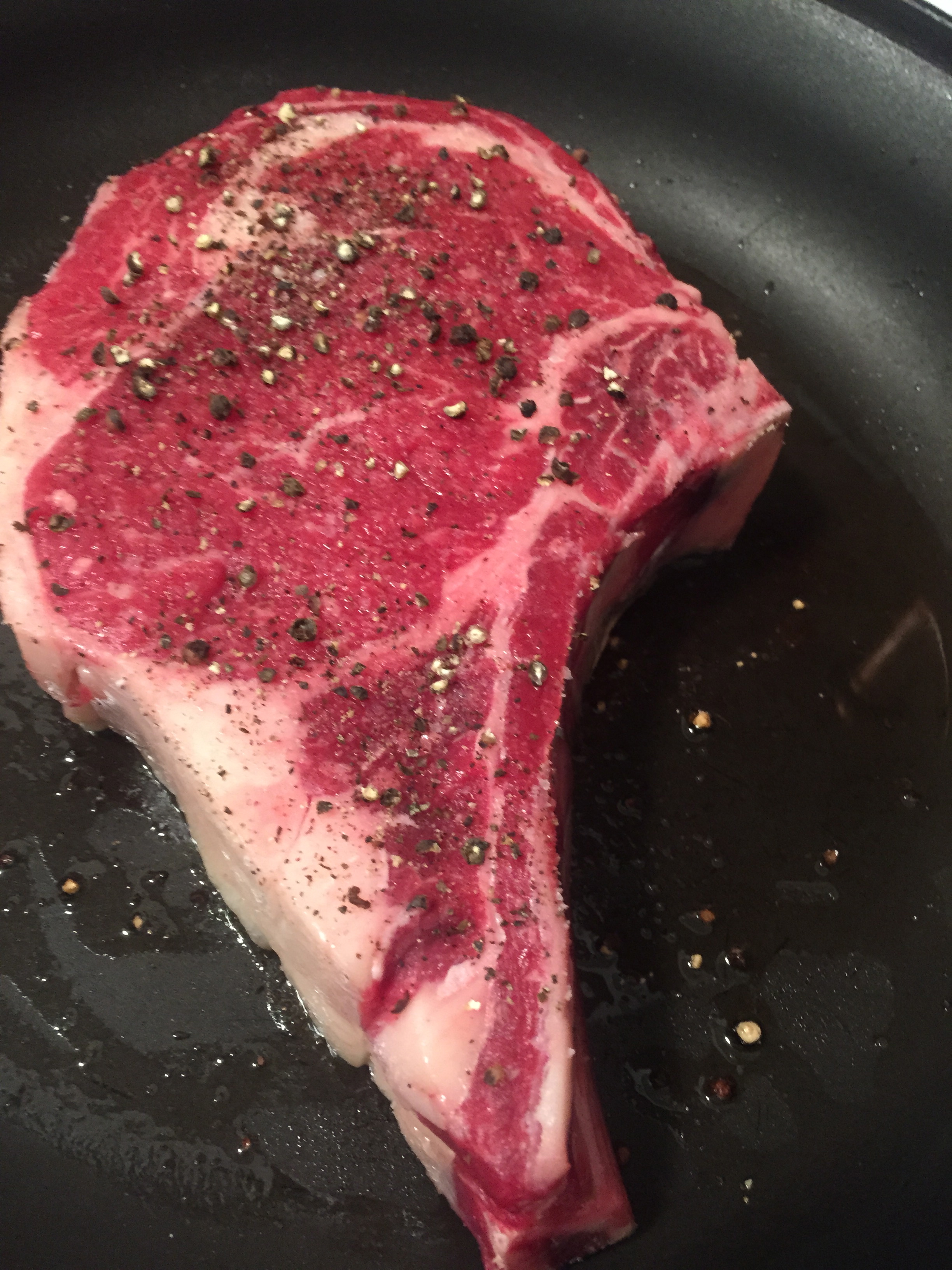 Season in a tiny amount of oil – don’t fiddle with the steak for about 5 minutes as it cooks on one side.  Walk away if you need to.  Its the sear that gives flavor to the steak and the sauce.