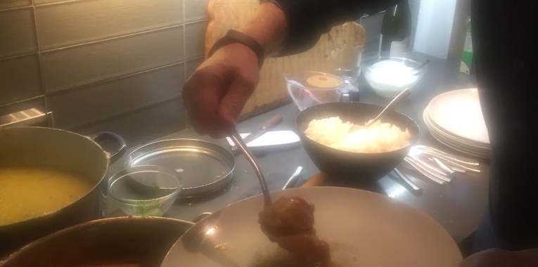 I send you the grocery list for the food and will bring the spices and any special ingredients that are tough to find.