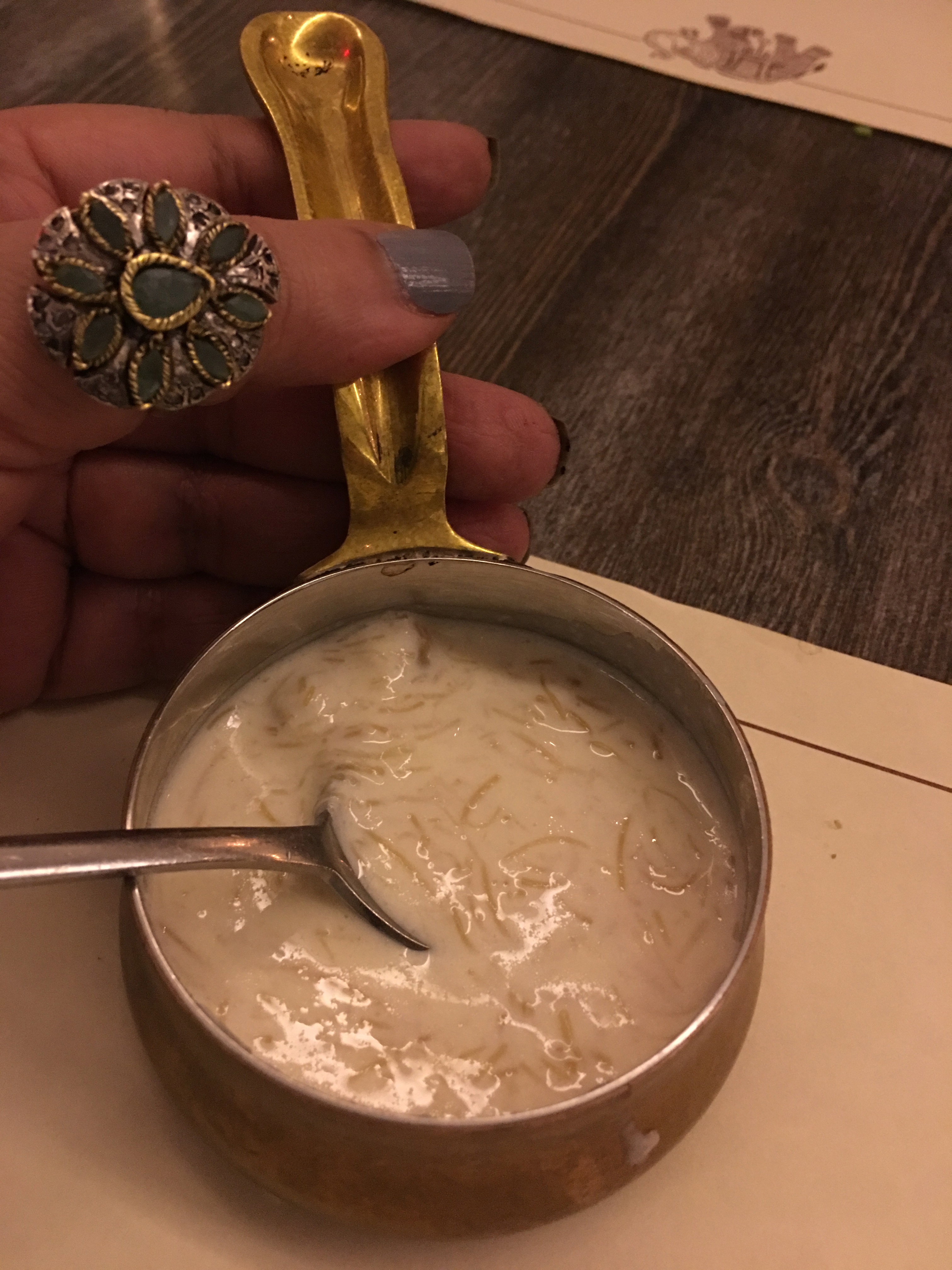 We were presented with dessert on the house at the end of our meal. It’s a dish called seviyan which is vermicelli cooked in milk with saffron and raisins.
