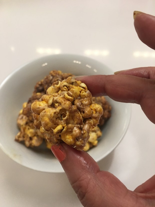 And so I made sweet and spicy popcorn balls with English toffee. And for the chocolate lovers, homemade cognac truffles.