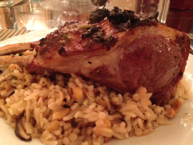 I served the chops over mushroom pilaf.